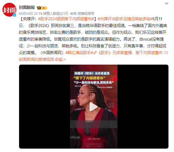 《歌手2024》纯直播无修音的安排,也正赶上各种假唱风波频出的时间点。