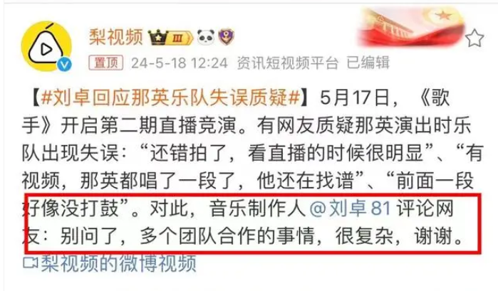 有细心的网友发现伴奏忽大忽小、炸麦,甚至可能因设备故障导致了乐手失误。