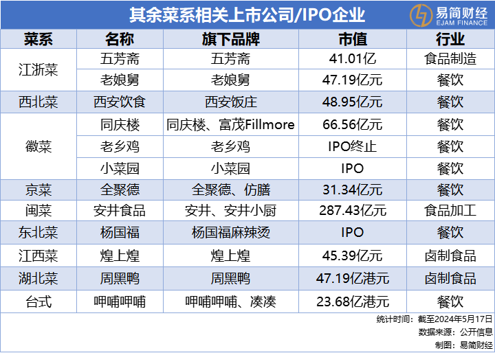 而像海底捞一样能代表一个菜系口味,并且实现上市的公司,其实还有不少。据易简财经不完全统计,总结了以下几类。