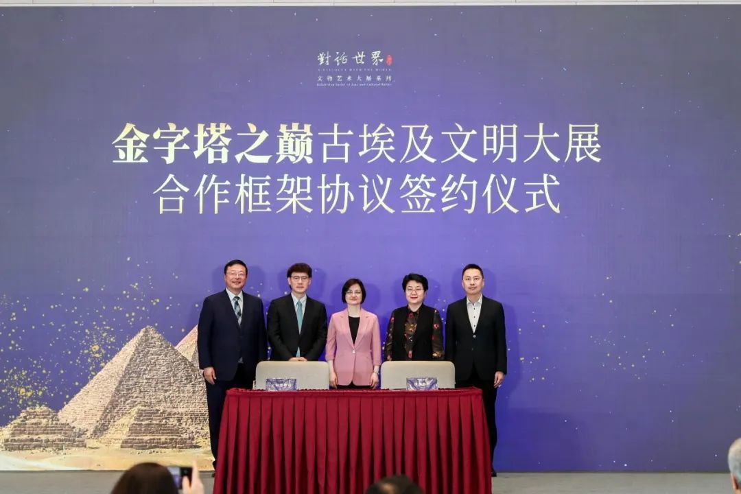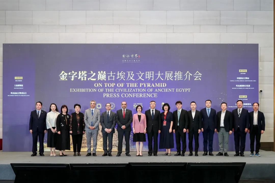 2024年5月20日,作为上海博物馆“对话世界”文物艺术大展系列第四展,“金字塔之巅:古埃及文明大展”在世界会客厅举办推介会。本次展览由上海博物馆、埃及最高文物委员会联合举办,中国国家文物局、埃及旅游和文物部共同指导,并得到上海市文化和旅游局、上海广播电视台的特别支持,展览将于7月18日在上海博物馆人民广场馆盛大启幕,并于7月19日向公众开放。“金字塔之巅:古埃及文明大展”将是有史以来全球最大规模、亚洲最高等级的古埃及文物出境展,也是中国官方博物馆首次与埃及政府合作,全面揭秘古埃及文明及其最新考古发现的重磅大展。展期将近13个月,延续至2025年8月17日。