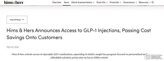 据介绍,Hims&Hers将提供复合型GLP-1减肥注射剂,定价为199美元,这相较于其他家产品价格的85%。
