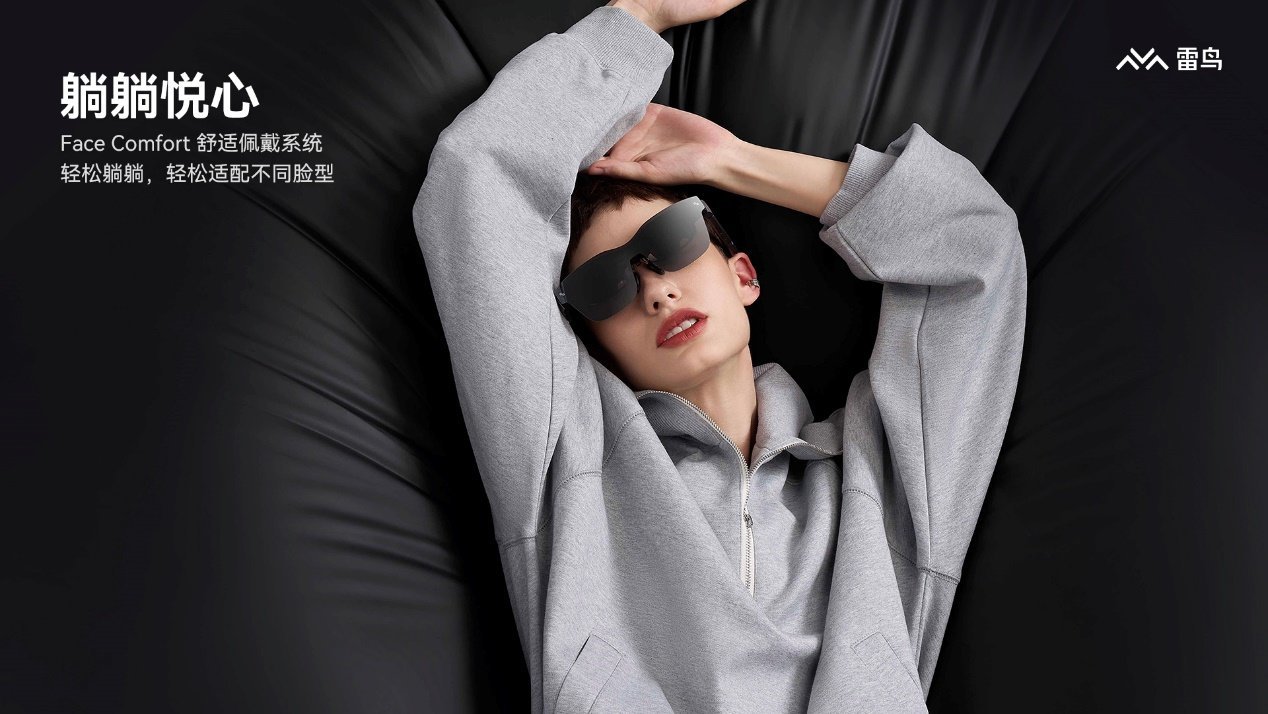 其他方面,雷鸟Air 2s采用了全新的人体工程学设计,例如在镜腿内侧采用亲肤材料,触感舒适、不易沾染汗污和油污;挂耳处更加柔软,更贴合耳朵曲线,躺下观影同样自在。眼镜整机科学的前后配重比有效降低鼻梁负担,鼻托及镜腿支持9挡自由调节完美适配各种脸型等。