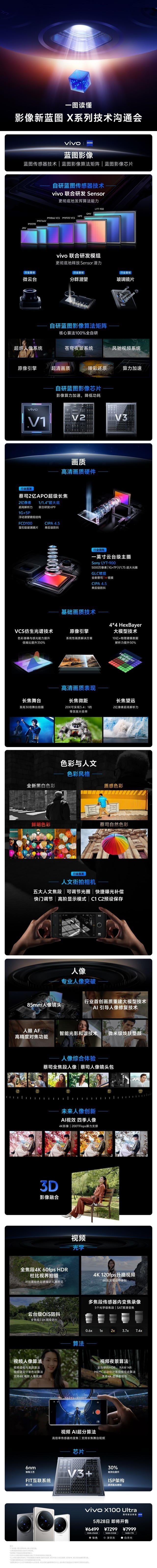 中关村在线消息:5月21日,vivo举办了“影像新蓝图?X系列技术沟通会”,公布了vivo影像自研与共研并行战略、vivo蔡司联合影像系统下蓝图影像的核心自研技术积累,以及在这些技术加持下vivo X100 Ultra实现的优质影像体验。错过了沟通会?没关系,一张图带你快速看懂。