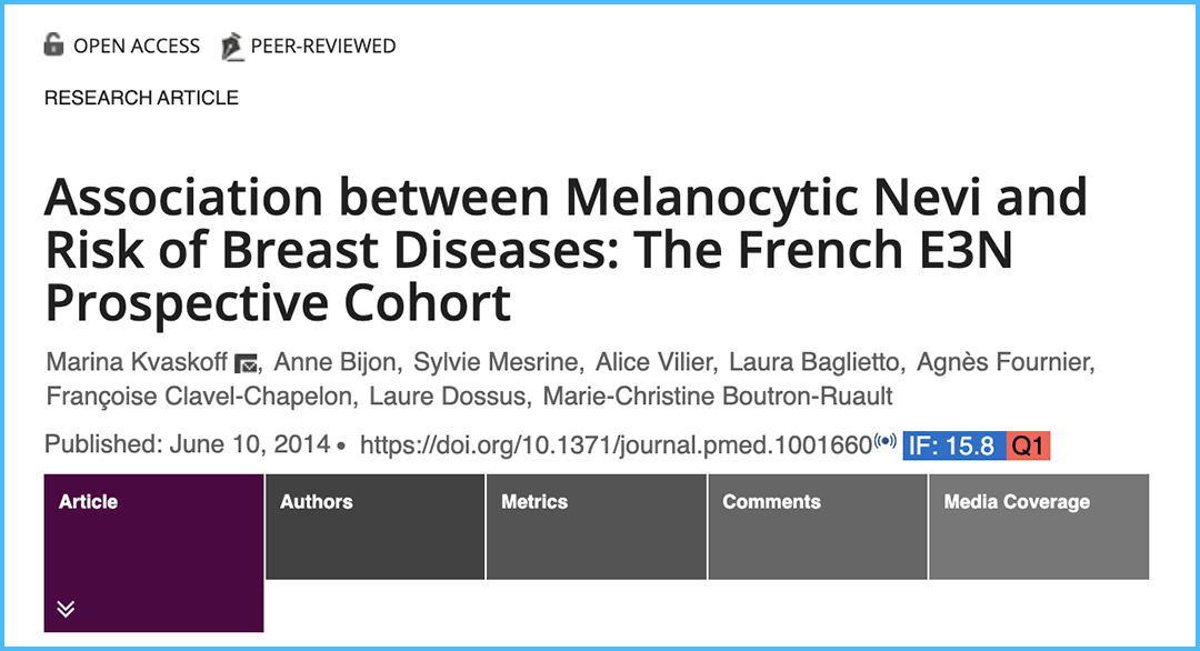 有15颗以及15颗以上痣的女性,乳腺癌风险增高35%。