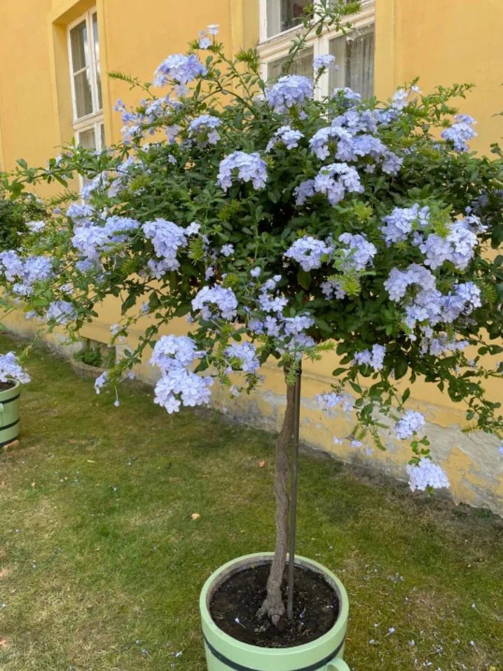 蓝雪花是极其耐晒耐热,耐高温的一种半爬藤植物,平常很多朋友反映,将蓝雪花养在花盆中,植株会长得特别散乱,就是因为它的枝条比较软,如果没有给它搭设好架子让它攀附生长,整棵植株就会特别乱。