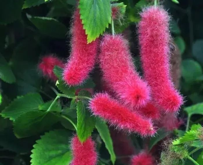 猫尾红的叶子看起来毛茸茸的,开出来的花朵就像一条条猫尾巴一般,花穗是比较短的,但是每条花穗看起来都是毛茸茸的,感觉就特别喜庆。