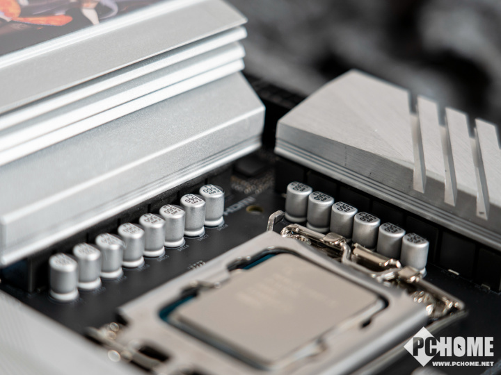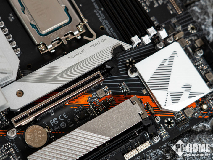 主板还采用2盎司铜的PCB,加厚的铜箔具有良好的导热能力,通过改进的散热、供电处理和智能超频技术来增强系统性能。两个M.2插槽也配有厚实的散热装甲,可以防止SSD因为过热掉速,保证整机在高负载下稳定运行。