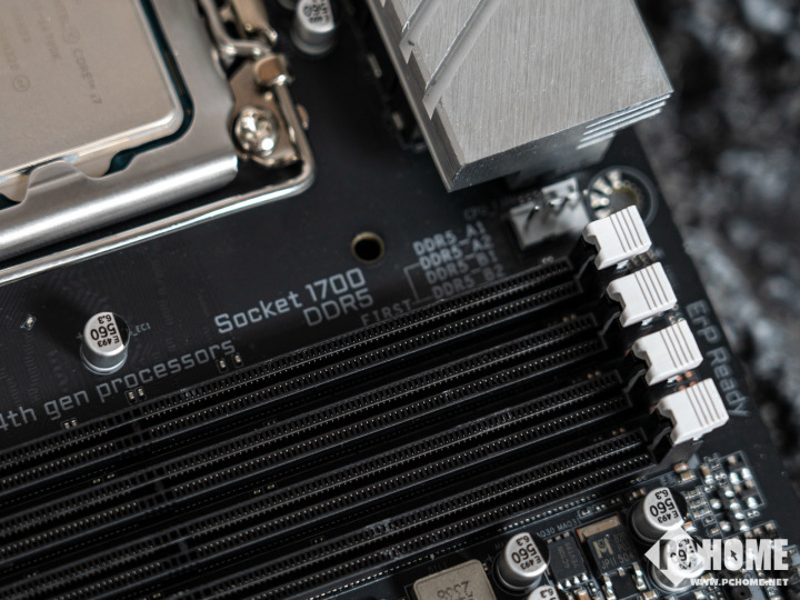 内存方面,B760M新雕妹2.0不仅解锁了DDR5,还带来了不少黑科技。提供四条DIMM插槽,支持双通道技术,总容量高达192GB。内存布线被屏蔽在PCB内层,以防止干扰。支持一键提升DDR5内存超频,最高可达7800 MT/s,还支持DDR5内存的High Bandwidth和Low Latency功能,也就是高带宽和低延迟,在BIOS中开启选项,将带来更快的内存性能表现,后面我们将为大家带来详细测试。