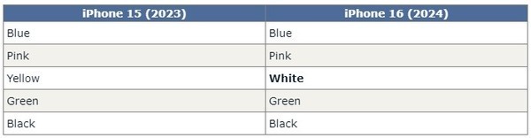 近几年,iPhone在机身颜色上不断推陈出新。例如,iPhone 15和iPhone 15 Plus有黑色、蓝色、绿色、黄色和粉色可供选择。根据苹果分析师郭明錤的最新消息,今年的iPhone 16和 iPhone 16 Plus将有黑色、蓝色、绿色、白色和粉色可供选择。换句话说,白色将取代黄色,其他颜色将保持不变。