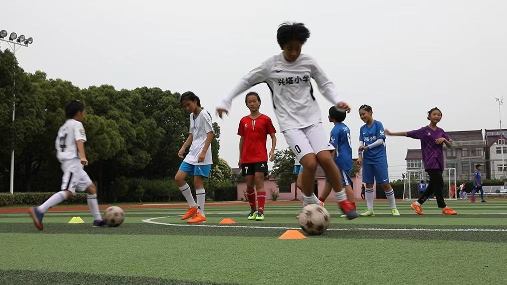 以金山区兴塔小学为例,从2007年至今,学校足球队在市级以上国内外比赛中荣获51次冠军、26次亚军。作为体教结合的优秀案例,学校坚持“五育并举、融合发展”的理念,精心设计“校园花式足球”校本课程,从学生基础层级、年龄层级等方面不断优化,在趣味课堂中积极培养学生的足球兴趣。