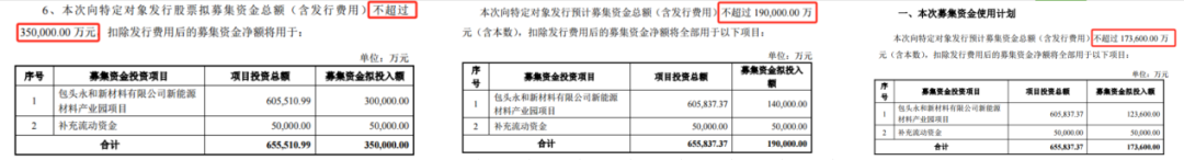 2024年5月21日,永和股份又发布了定增预案二次修订稿,拟募资总额调整为不超过17.36亿元,拟投入包头永和新材料有限公司新能源材料产业园项目资金为12.36亿元,补充流动资金仍为5亿元。