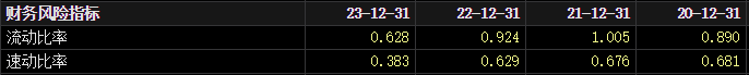 另一组数据显示,2020年至2023年,永和股份的流动比率分别为0.890、1.005、0.924、0.628,呈现先升后降趋势;速动比率分别为0.681、0.676、0.629 、0.383,整体呈现下降趋势。