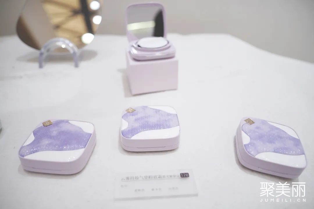轻敏肌底妆品牌修可芙在此次美博会上,带来了贝壳防晒气垫以及明星单品小方盒气垫520暮光紫限定版。