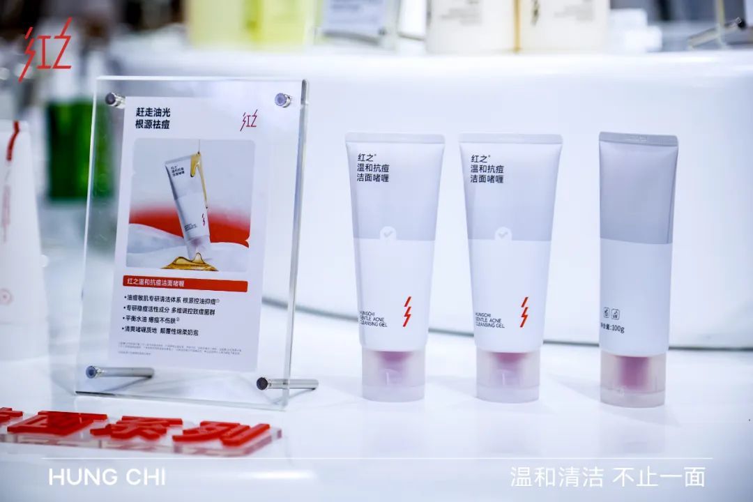 “清洁专家”红之首次亮相CBE大会,带来了品牌近期3款重点新品:红之小蛮腰卸妆油2.0、红之温和抗痘洁面啫喱以及红之植酸多效清洁泥膜。