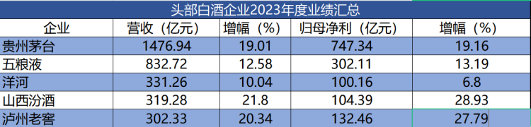 头部白酒企业2023年度业绩汇总