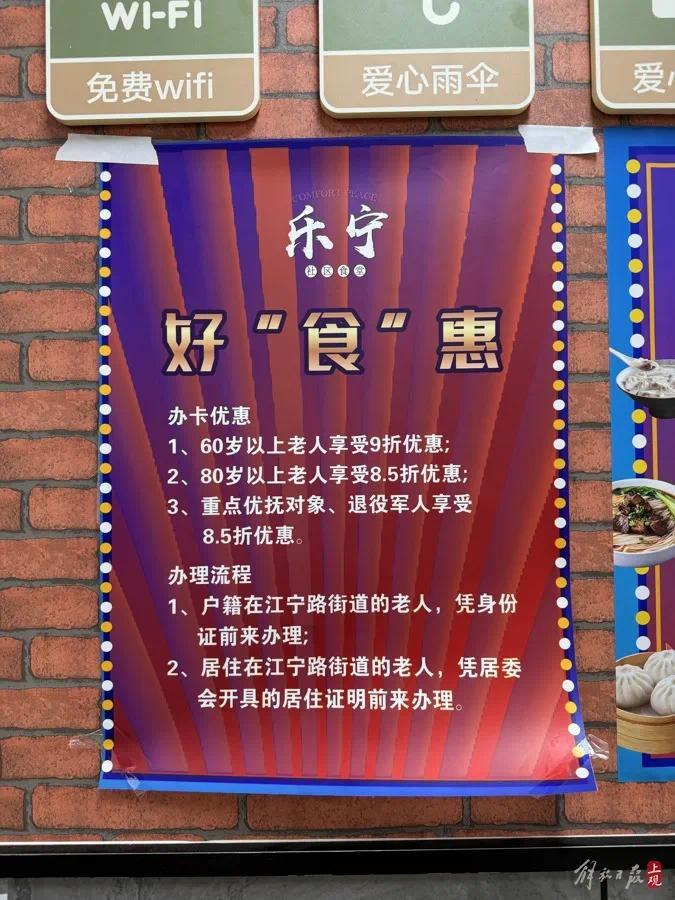 江宁社区食堂的助老餐为凭卡消费,直接打折