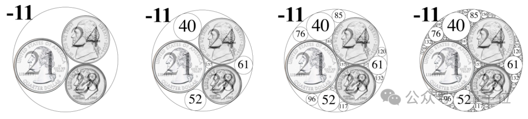 整数apollonian堆积,每个圆都与给定的三个圆相切