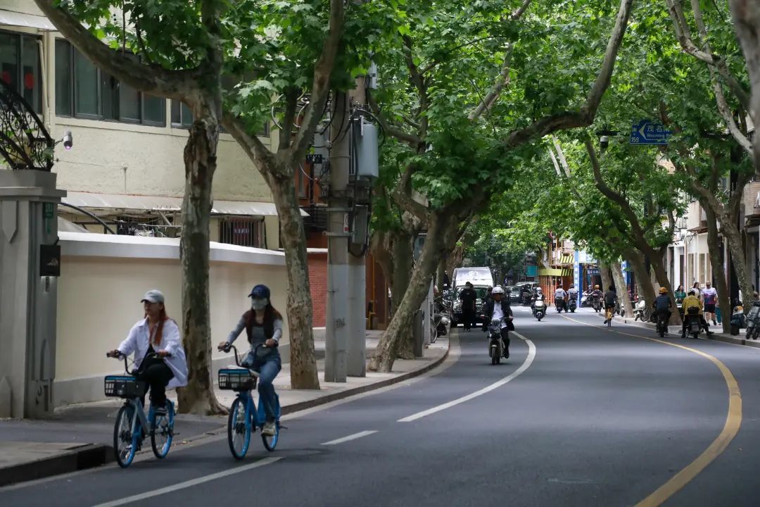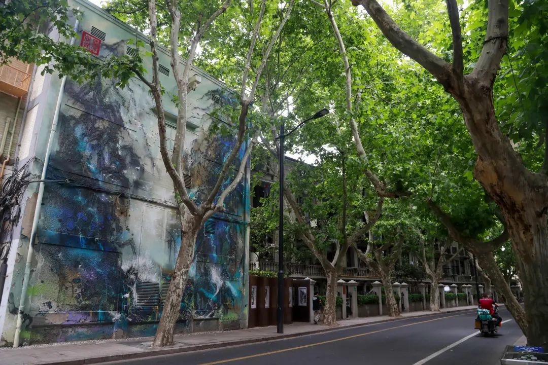 走在南昌路,十几米宽的路旁两侧,法国梧桐高耸入云,夏天绿树成荫,秋天落叶满街,一年四季映衬着身后的老建筑,展现出截然不同的风情。