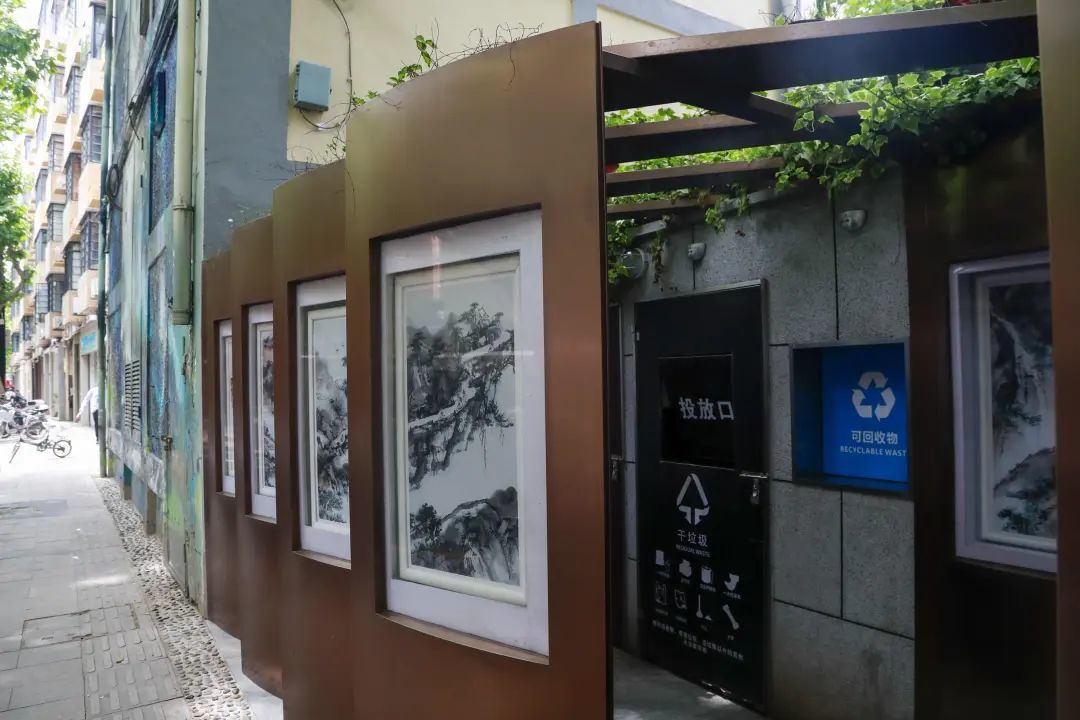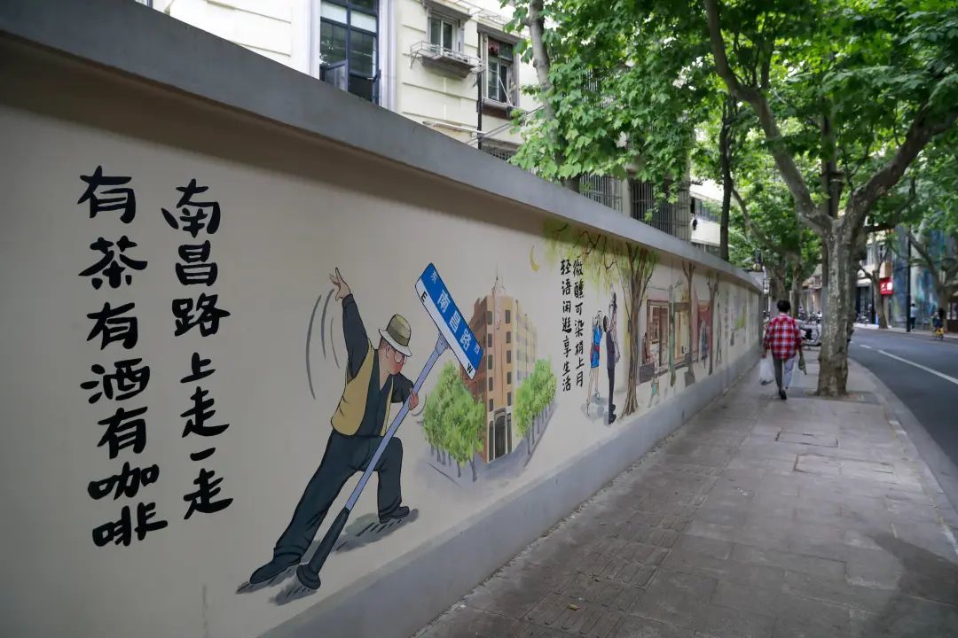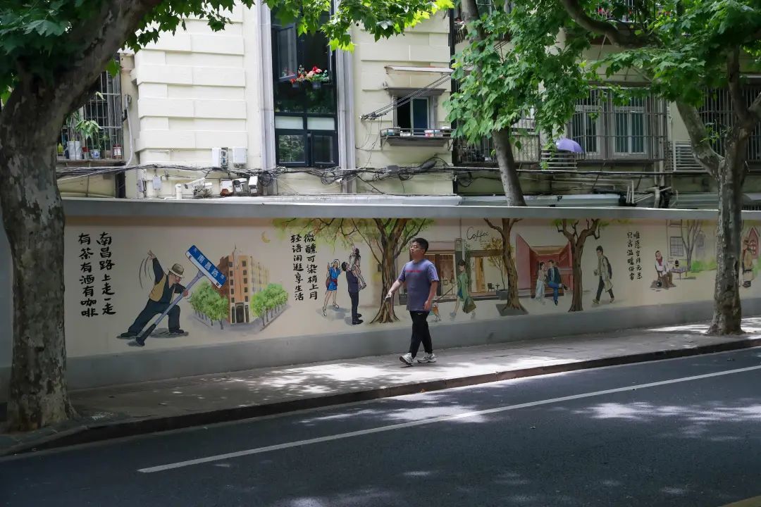 南昌路上还有着上海首家视障人士友好书店——新华书店“逆光226”;沿街的墙绘画着弄堂生活,青年艺术家的“山水画”也为南昌路292号变电站披上“新装”;相片墙为垃圾投放点搭起了一扇门;“南昌路”LOGO字体被分为拆解和组合两种样式,变成小方砖散落在树池和街道……这里更像没有围墙的美术馆。
