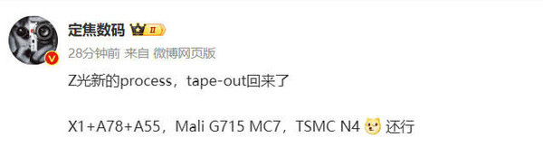 【CNMO科技消息】5月24日,CNMO注意到,有爆料人士曝光了一颗紫光展锐的新芯片。据悉,这颗芯片将采用台积电4nm工艺打造,CPU将采用一颗X1超大核心,GPU则为Mali G715 MC7。据悉,这颗紫光展锐的新芯片在性能方面可以匹敌高通骁龙888,但是在功耗和能效方面应该会远胜于后者。