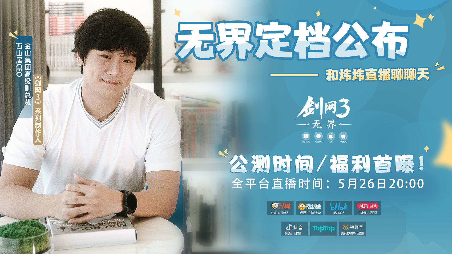 与此同时,《剑网3无界》真的要来啦!锁定本周日(5月26日)20点——剑网3制作人郭炜炜及执行制作人余玉贤共同为侠士们揭晓移动端正式上线日期以及公测系列福利活动!大美江湖,我心无界!