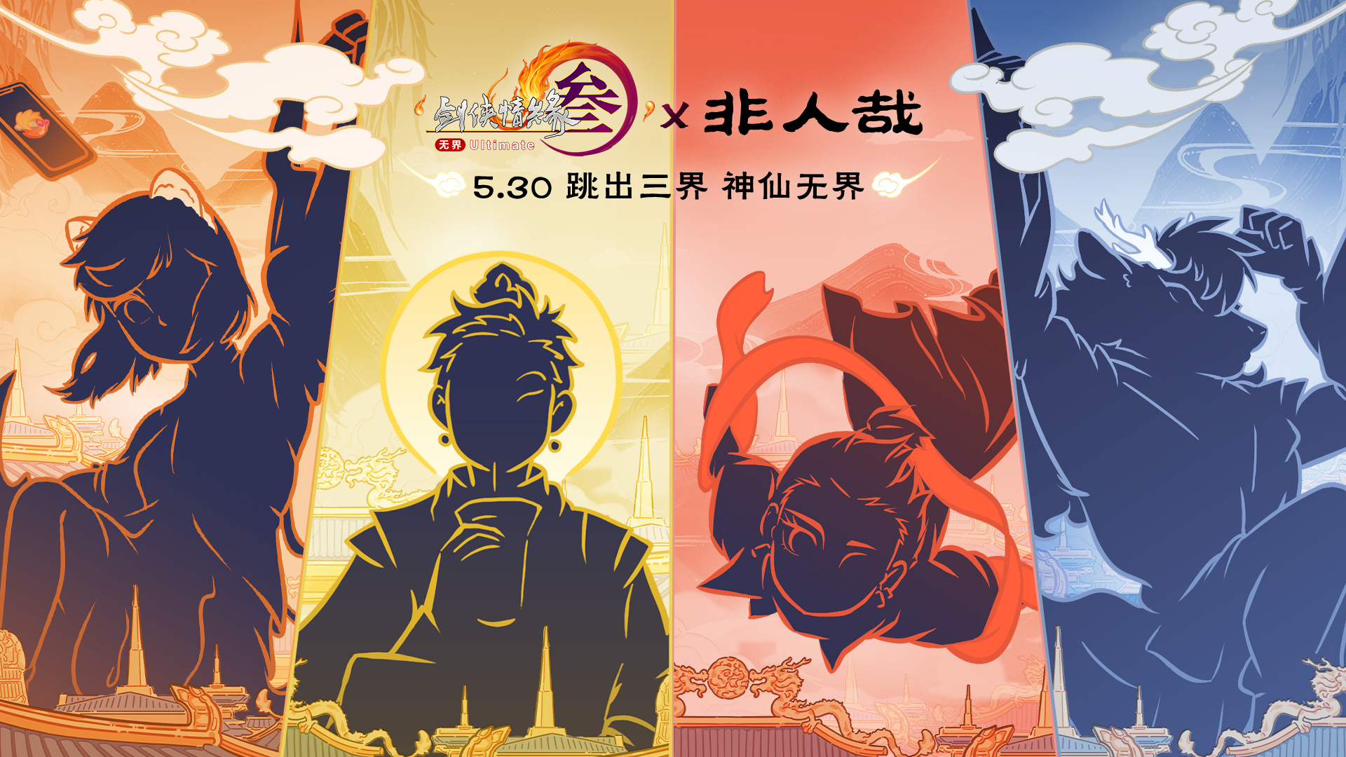 “神仙”联动来了!《剑网3》与超人气国创IP《非人哉》跨界联动正式定档5月30日!九尾狐“九月”、西海龙王三太子“敖烈”、嫦娥的第一只玉兔“小玉”、还有传说中的“哪吒”和“观音大士”……这么多神仙妖怪现身江湖之中,你能辨认出来吗?