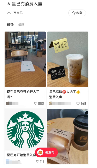 社交平台上关于星巴克消费入座的讨论。图/截图