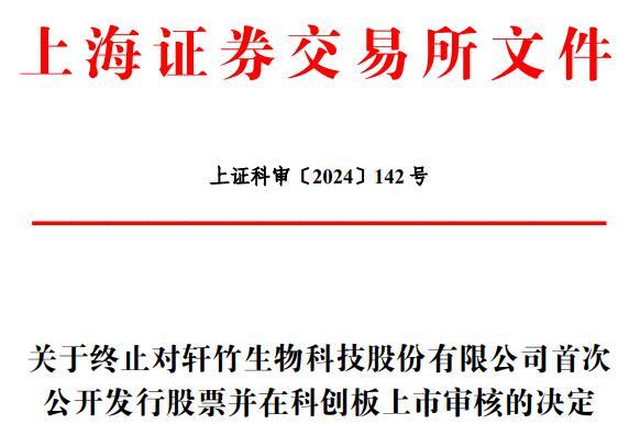 中国经济网北京5月25日讯 上交所网站昨日披露关于终止对轩竹生物科技股份有限公司(简称“轩竹生物”)首次公开发行股票并在科创板上市审核的决定。