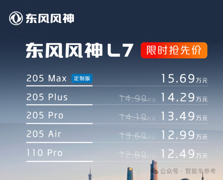 东风风神L7的定价,就是贴着过去的销冠打。