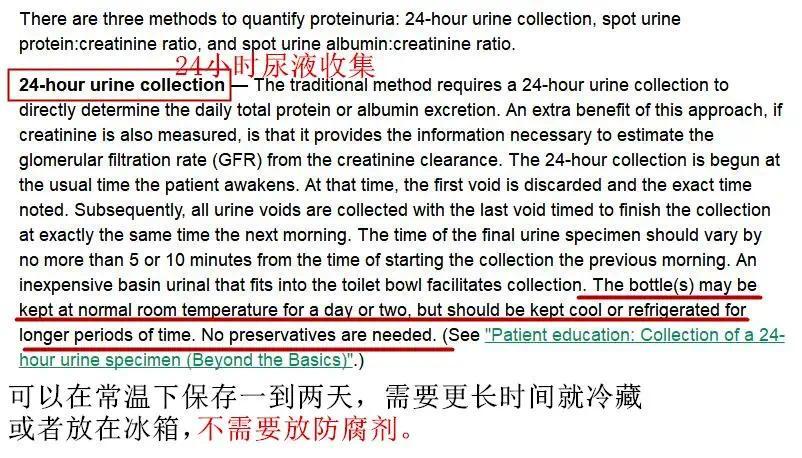 全球最权威的临床循证医学数据库uptodate也明确说明:收集24小时尿液不需要放防腐剂。