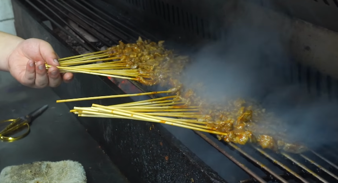 炭火的热量可以将猪小弟的水分榨取干净,只留下筋。辅以烧烤秘料,猪小弟在火中跳舞,迎来二次升华。