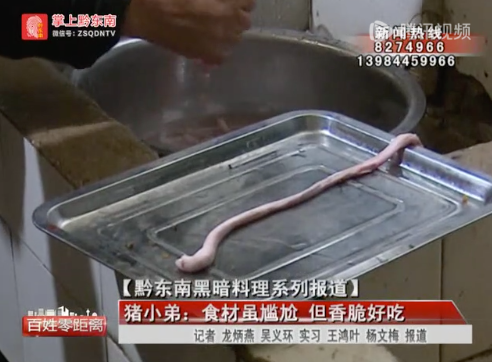 当地主流媒体也曾将摄像头对准了这道美食,并将麦克风递到了在嗦猪小弟的食客嘴边。