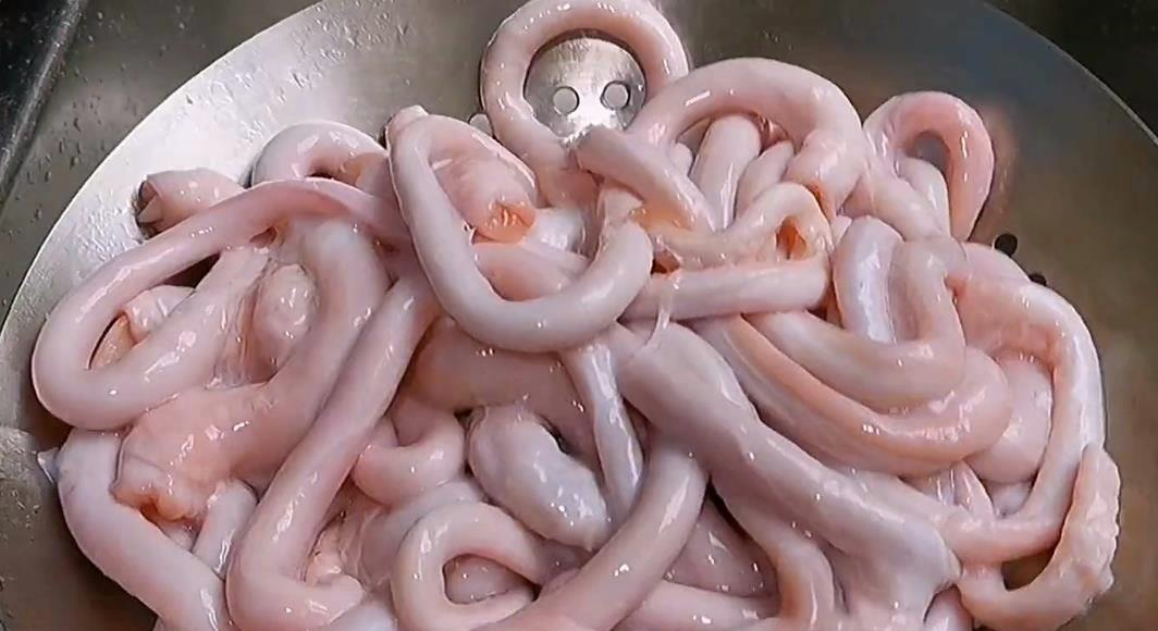 “我们在清洗猪小弟时,一般是先把它洗干净,再把这上面的一层皮全部清理干净,之后再用热水烫一下,就清洗干净了。”
