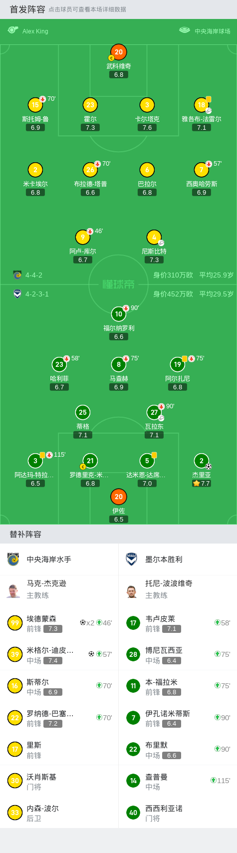 加时下半场补时第1分钟,中央海岸水手球员雅各布-法雷尔助攻埃德蒙森打入一球。