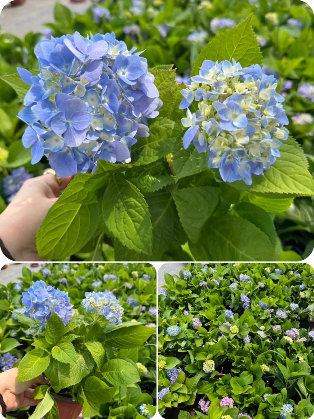 今年绣球花真的是大降价,比如下面这种苗情的无尽夏绣球,带花发货,16厘米口径的塑料盆,就9.9元。下面的图就是基地实拍图。