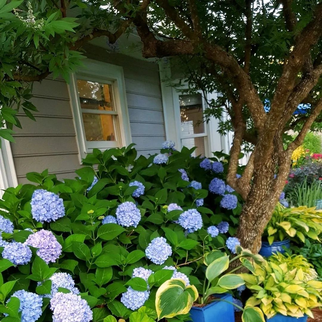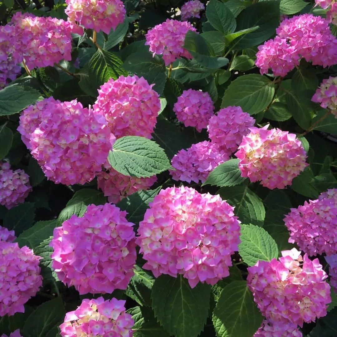 无尽夏绣球(Hydrangea macrophylla "Endless Summer",这个品种的寓意就是整个夏季开不停)打理得当,从春末就可以开始开花,一直到秋季都能观赏到它的花朵。这个品种不仅可以新老枝开花,而且它还可以调色,在酸性比较强的土壤中,它能开出蓝色的小花,在酸性没那么强的土壤中就可以开出粉色或粉紫色的花。有时候甚至能在一棵植树上开出一部分蓝色花,一部分粉色花。
