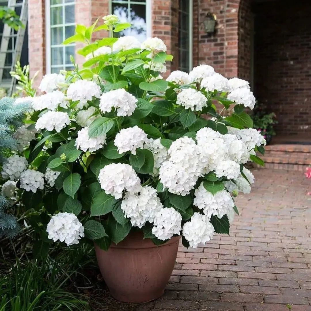 有一个品种叫无尽夏新娘,这个绣球品种就是开白色花的,这种品种就没办法调色的,无尽夏新娘只能开白色的花。