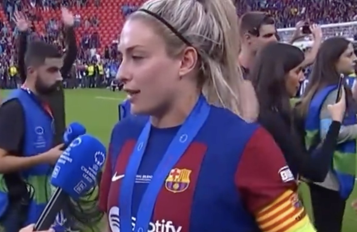 北京时间5月26日凌晨,巴塞罗那女足在欧冠决赛2-0击败里昂女足,赢得冠军,亚历克西娅-普特利亚斯打进了锁定胜局的一球,赛后,她接受了采访。
