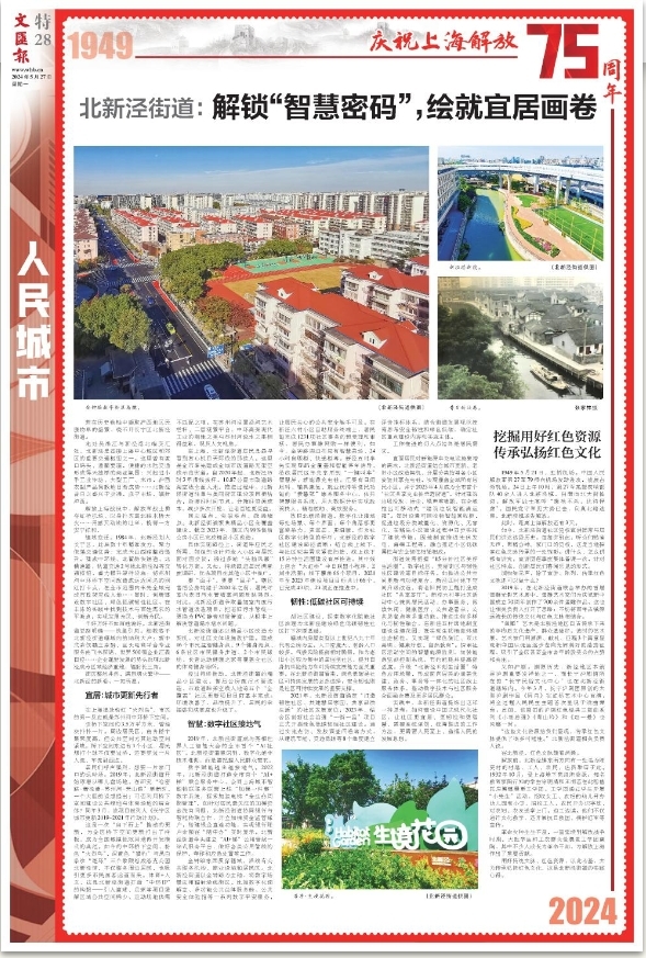 镇域变迁。1984年,北新泾划入长宁区,此后数十年精准发力。聚力做强交通优势:完成天山西路整治提升,建成中环线、北翟路快速道、北横通道、轨道交通2号线北新泾站等交通枢纽。着力提升硬件设施:将苏州河中环桥下空间改造成远近闻名的网红打卡点,在全市范围内率先全域完成市政架空线入地……同时,创新建设数字社区、绿色低碳韧性社区,在丰沛的实践中找到技术与百姓需求的平衡点,实现发展为民、创新为民。