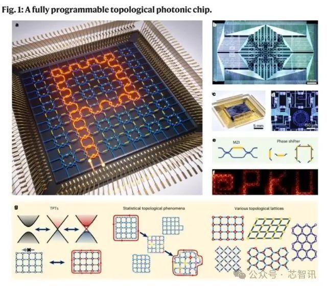 近日,北京大学王剑威研究员、胡小永教授、龚旗煌教授课题组与中国科学院微电子研究所杨妍研究员等合作者,将大规模硅基集成光芯片与拓扑光学紧密结合,首次实现了一种完全可编程的拓扑光子芯片。