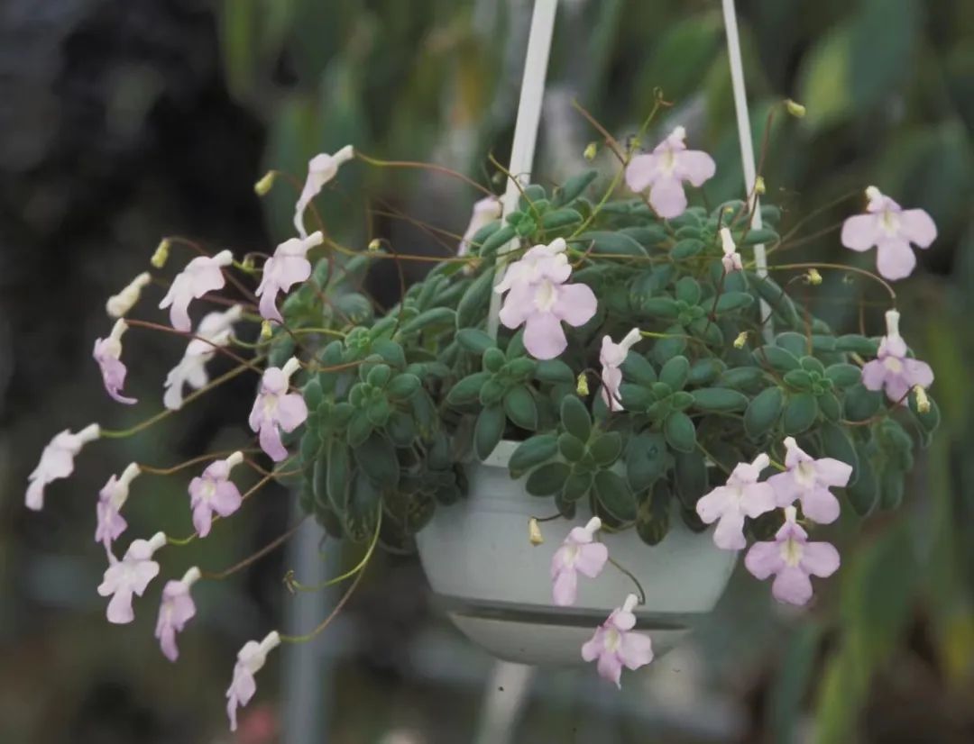 海豚花在每年的春夏季节,就能开出两朵小巧的花朵,如果能给它提供常年温润凉爽的环境,它一年四季都是可以开花的,在室内栽种是比较好的,它可以垂盆养护,也可以养成吊盆植物。