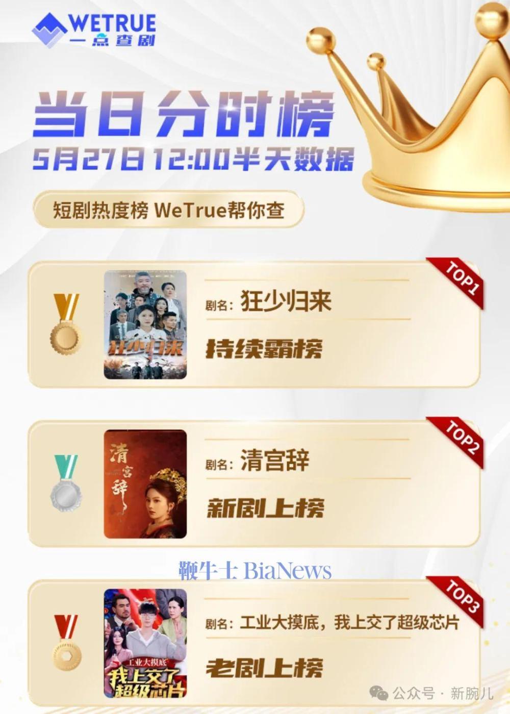 一点查剧WeTrue昨天12点前的分时数据显示,《清宫辞》已经跃居第二,不出意外,今天日榜将排名第一。