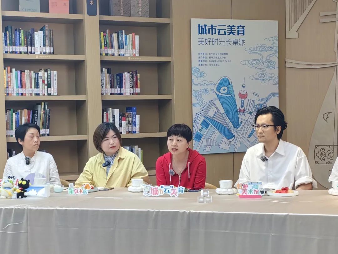 线下活动精彩纷呈,线上活动也是亮点满满。5月26日下午,长宁文化艺术中心品牌节目“美好时光·长桌派”最新一期“城市云美育”主题直播也在“文化上海云”、上海数字文化馆平台同步上线。本期邀请了上海市、长宁区公共文化数字化领域及美育领域相关专家,齐聚艺术中心与区图书馆共同打造的“新页书房·艺术主题馆”,边品“云”系美食,边聊“云”上文化服务,共同探讨如何充分发挥“互联网+”的优势,将美育融入到公共文化服务的各个环节,让美育之花绽放“云端”,扩大美育资源的受益人群。