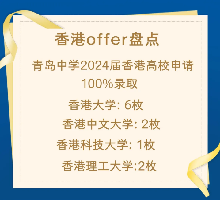 青岛中学国际部拥有丰富的香港高校申请经验,2024年香港申请成功率100%。