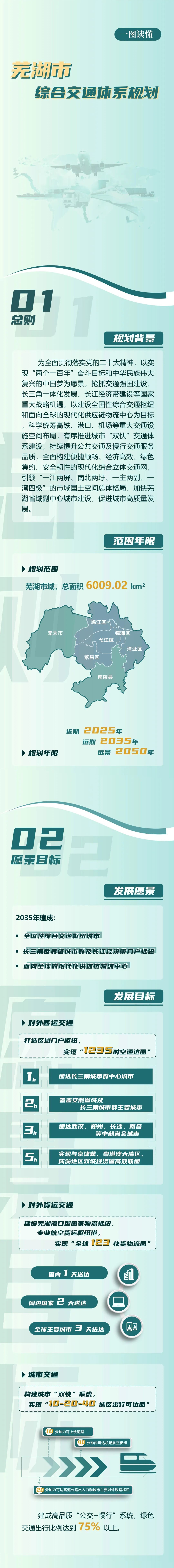 将芜湖市建设成为“全国性综合交通枢纽城市,长三角世界级城市群及长江经济带门户枢纽,面向全球的现代化供应链物流中心”。