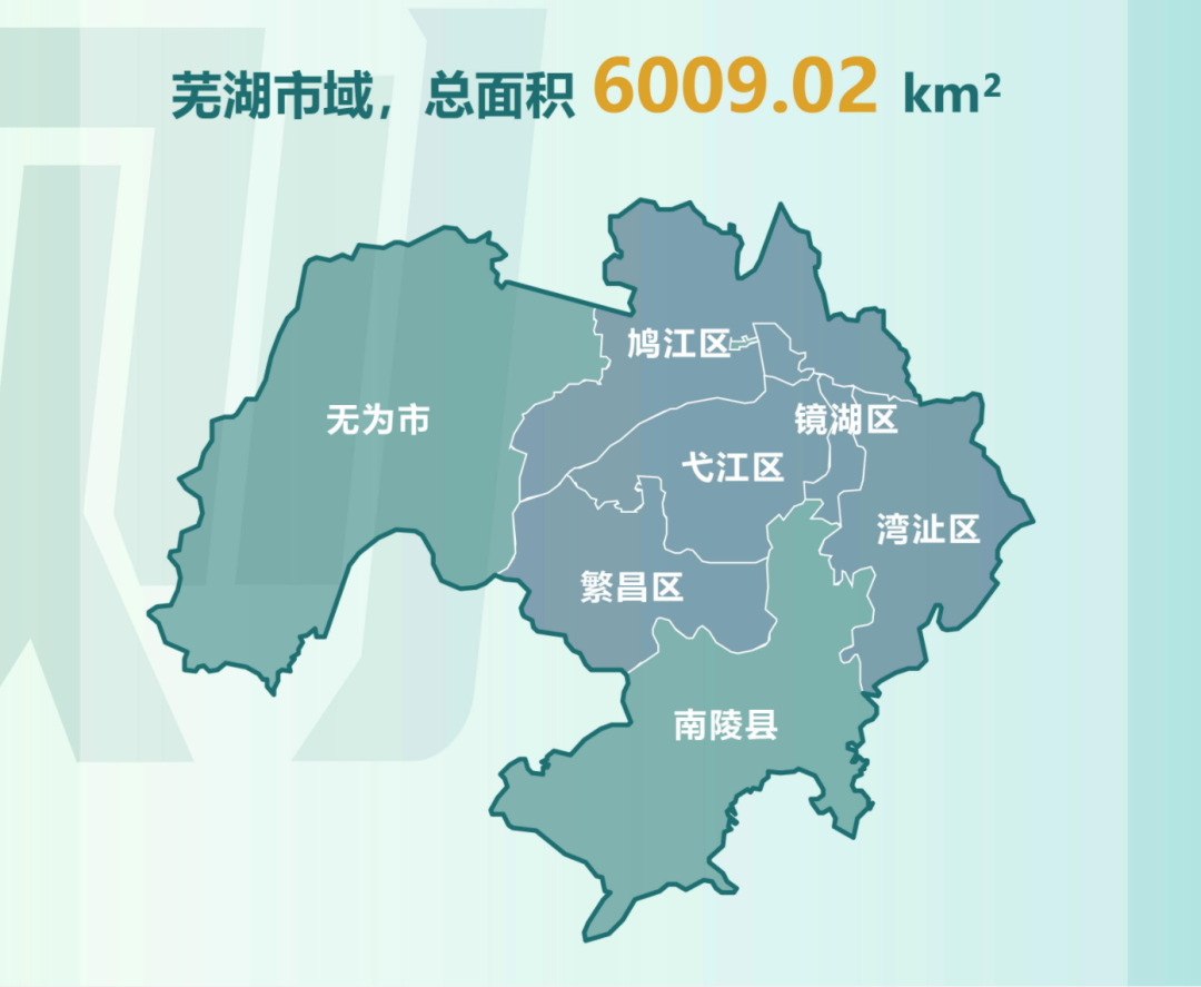 芜湖市行政辖区内的陆域空间,涵盖国土总面积6009.02平方千米。