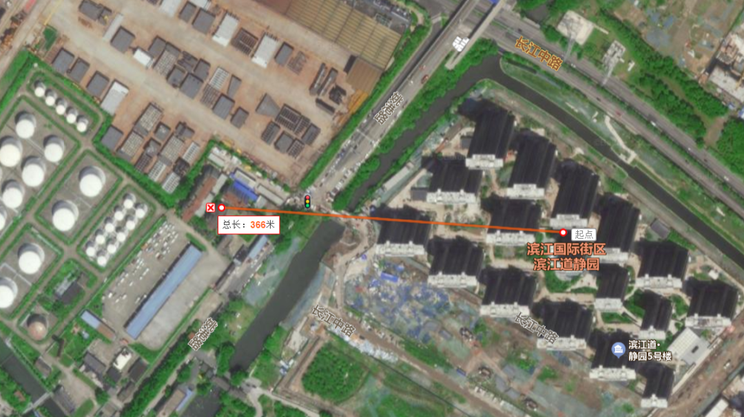 百度地图测算,拟调整地块与滨江道静园直线距离不到400米,但有信息显示,二类工业区与居民区的距离应至少为1000米。
