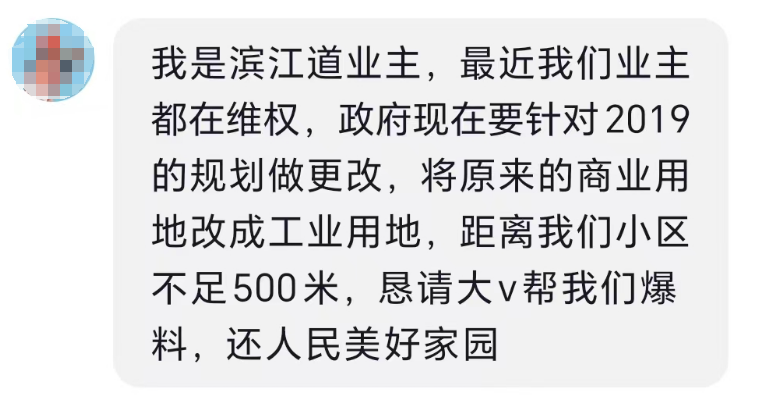 第一,业主认为,拟调整地块距离滨江道不足500米,如果改为工业用地,将对滨江业主造成各种不利影响,对居民健康造成威胁;