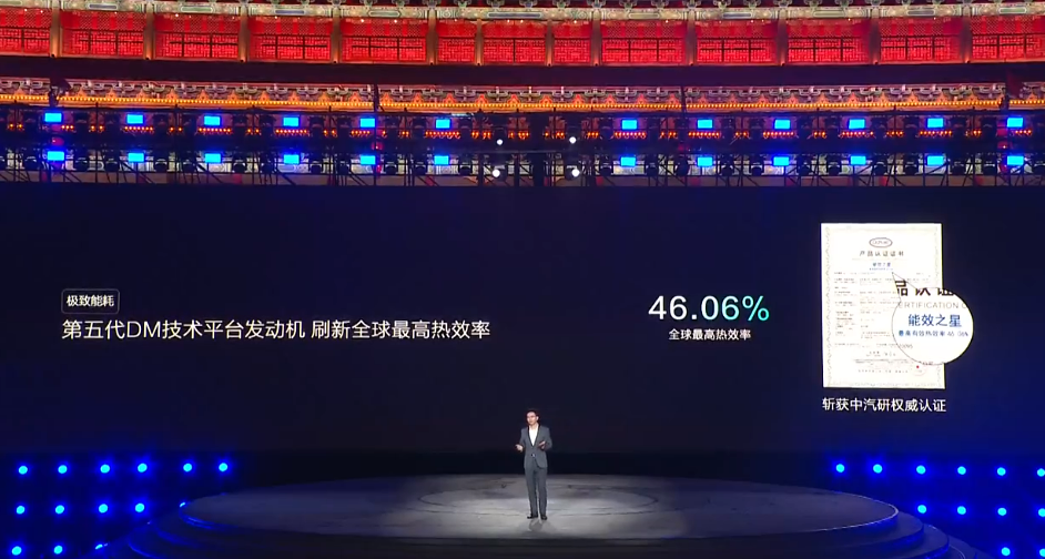 比亚迪官方介绍,第五代DM技术搭载的发动机能做到46.06%热效率,再一次刷新行业记录。此外,第五代DM技术将AI引入汽车能耗管理,可根据导航、历史通行数据及用户驾驶习惯优化行车模式,进一步降低汽车能耗。
