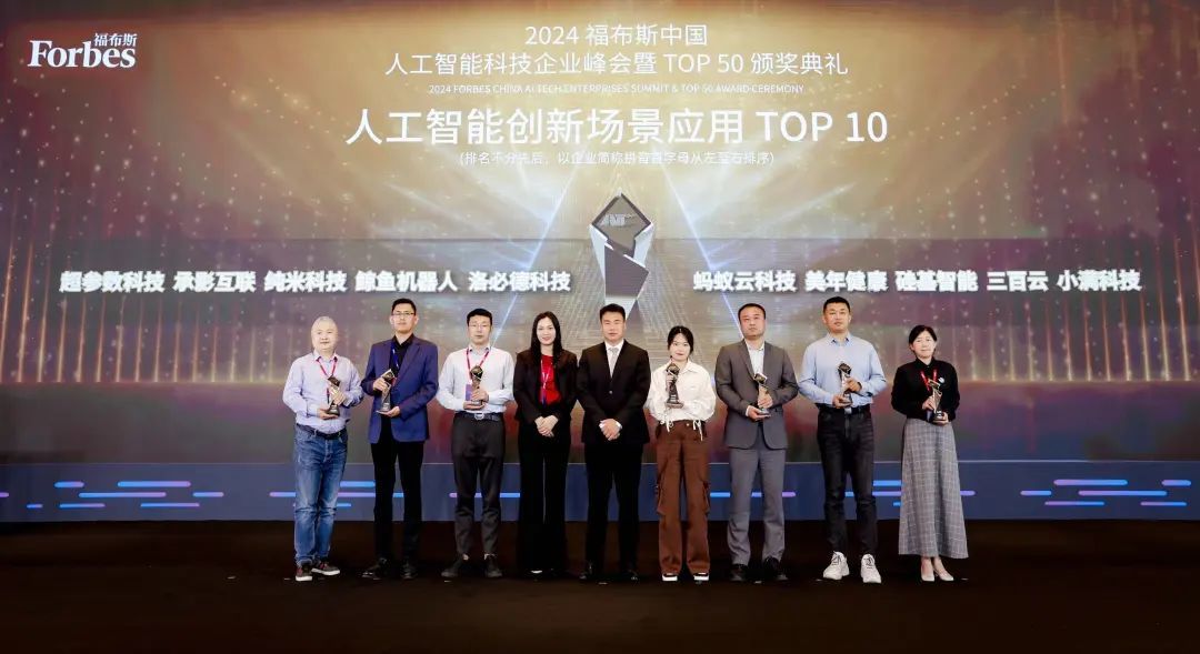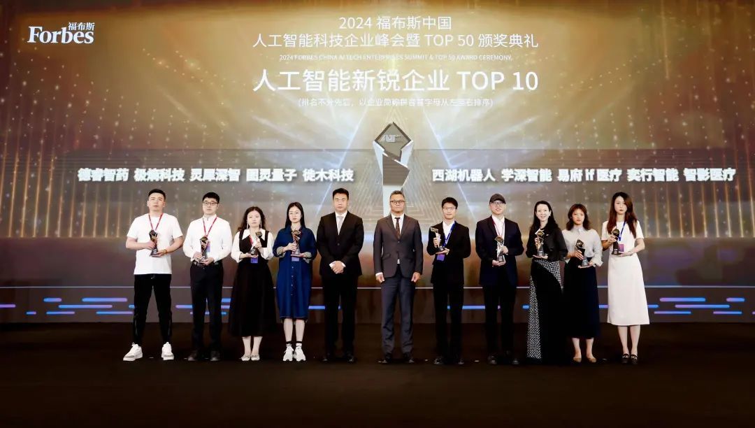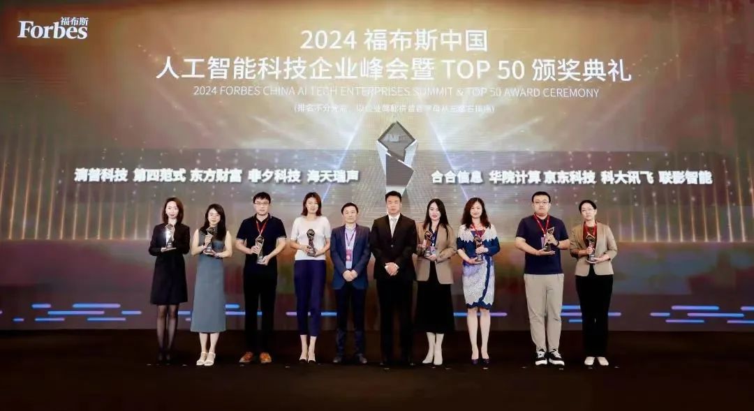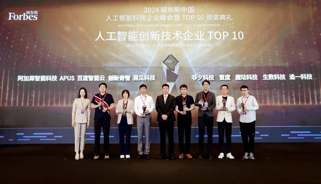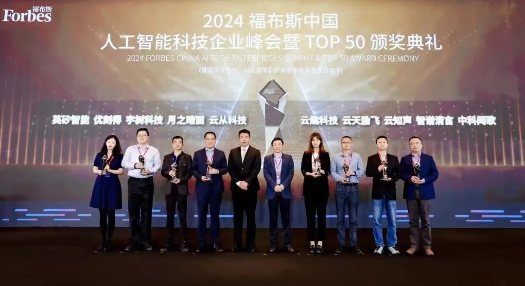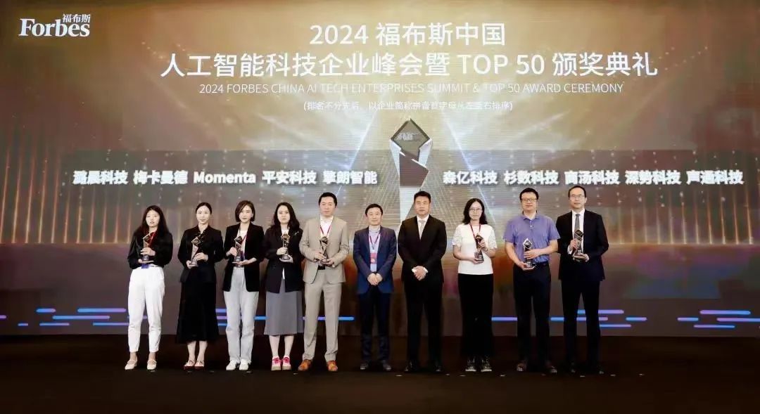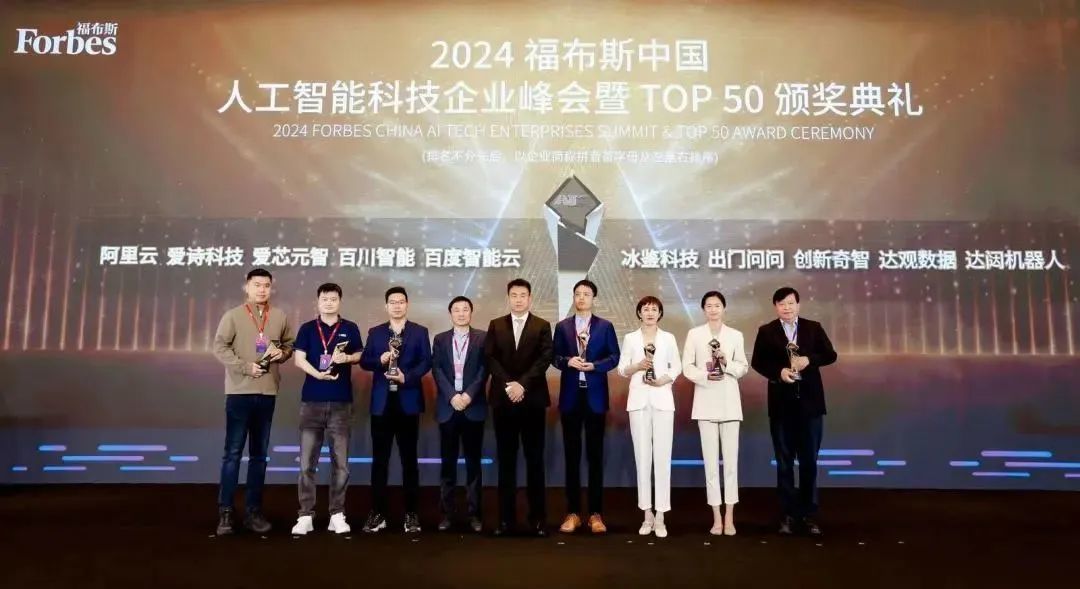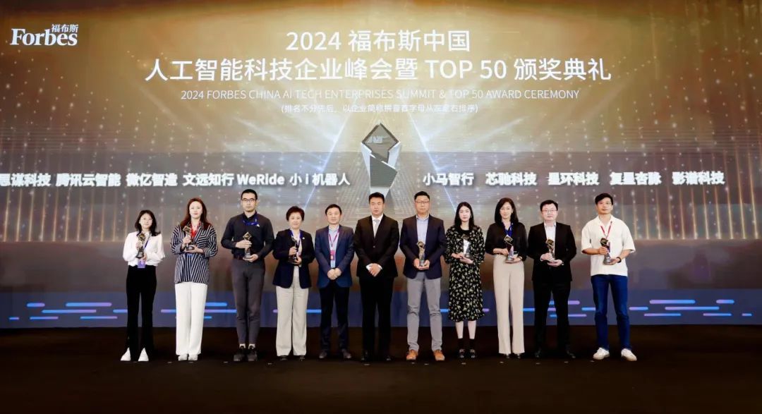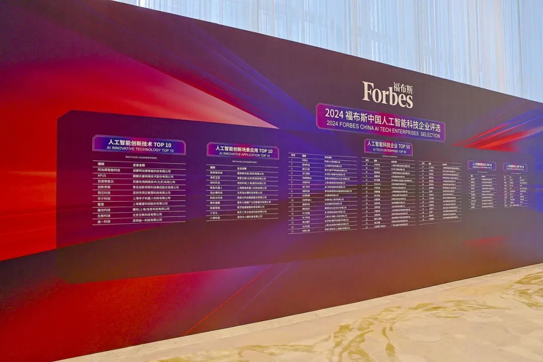 峰会还举行了2024福布斯中国人工智能科技企业TOP 50颁奖典礼,表彰了在人工智能科技企业发展方面取得优异成就的企业与个人。